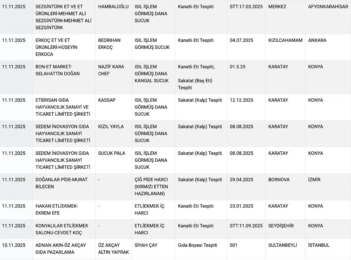 Gıdada hilenin yaptığı kentler: Afyonkarahisar, Ankara, Konya, İzmir, İstanbul oldu.