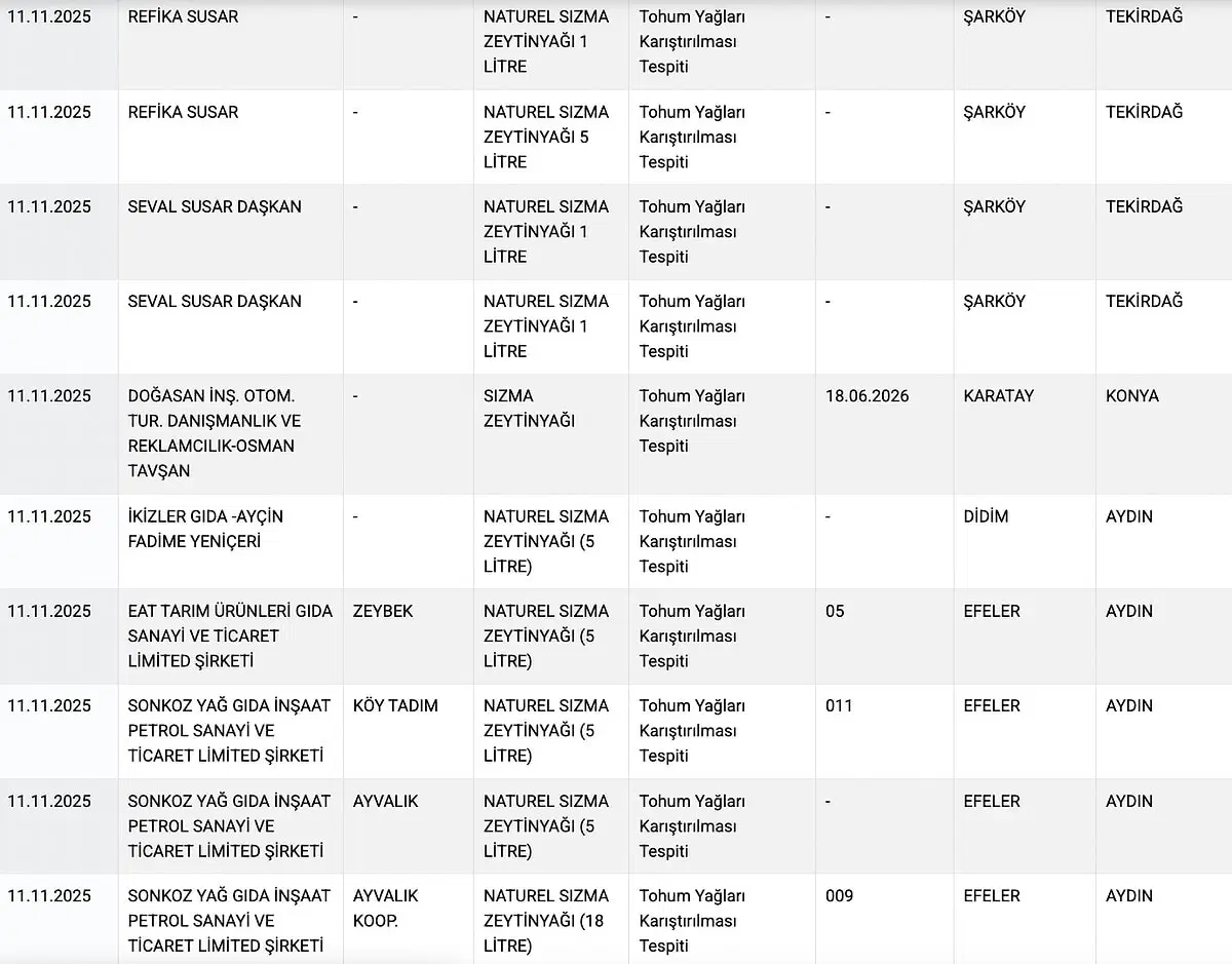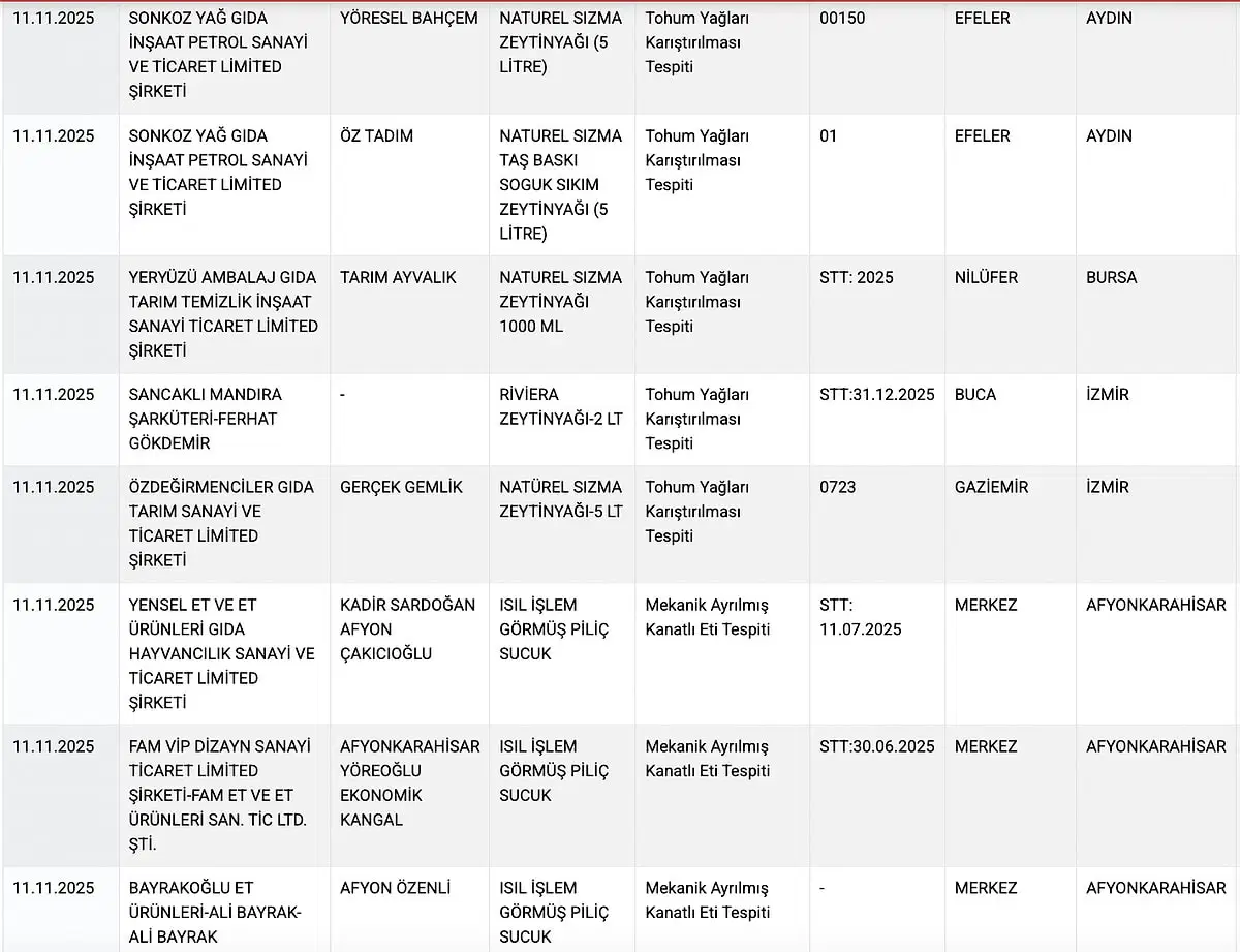 Bakanlık marka marka ifşa etti: Sucukta kalp, çayda boya, zeytinyağında tohum çıktı!