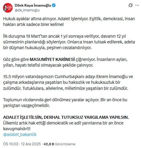 Dilek Kaya İmamoğlu’ndan İBB davası hakkında dikkat çeken paylaşım