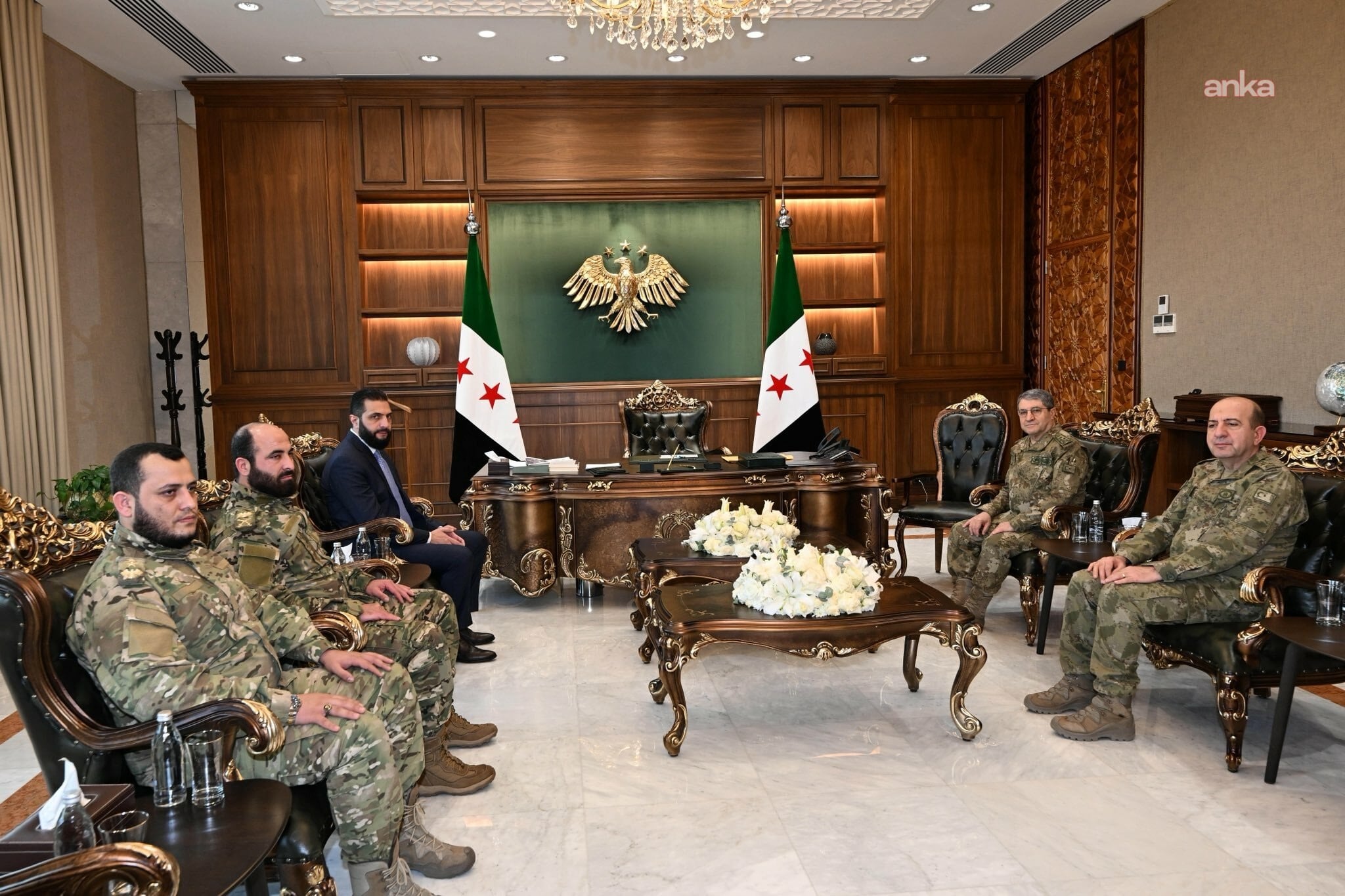 TSK’nın sosyal medya hesaplarından yapılan açıklamada, “Genelkurmay Başkanı Orgeneral Selçuk Bayraktaroğlu, resmî davet kapsamında bulunduğu Şam’da Suriye Arap Cumhuriyeti Cumhurbaşkanı Sn. Ahmet Eş-Şara tarafından kabul edilmiştir” ifadelerine yer verildi.