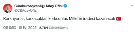 “Korkuyorlar, korkacaklar, korksunlar. Milletin iradesi kazanacak”