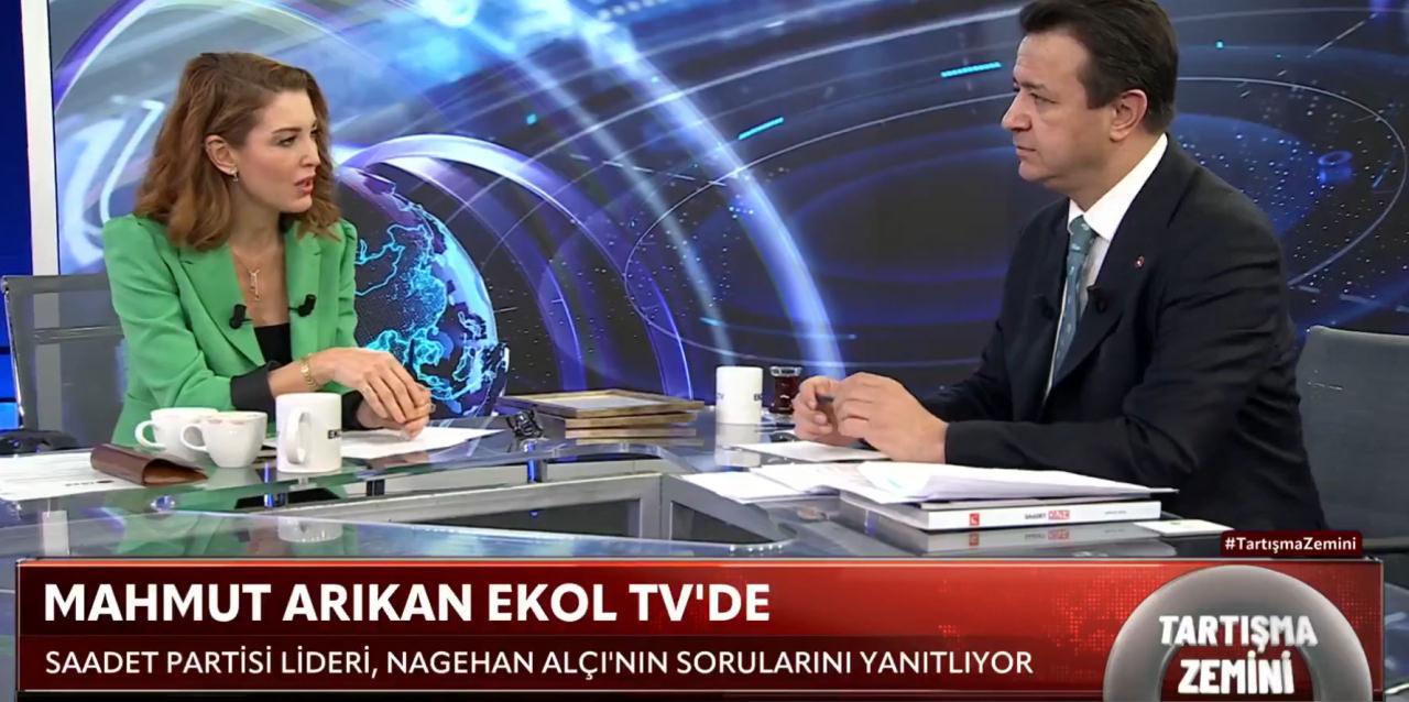 Saadet Partisi Genel Başkanı Mahmut Arıkan, Ekol TV ekranlarında yayınlanan ve Nagehan Alçı’nın sunduğu “Tartışma Zemini” programına konuk oldu. Arıkan, programda siyaset gündemine ilişkin önemli değerlendirmelerde ve dikkat çeken açıklamalarda bulundu.
